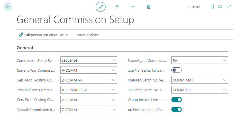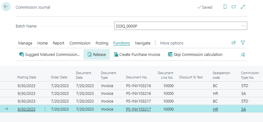 Dalla pagina “Salesperson Commission Setup” si può accedere attraverso i bottoni Create Commission Batch e Open Commission Batch alla pagina “Commission Journal” nella quale si possono gestire le provvigioni dell’agente scelto.