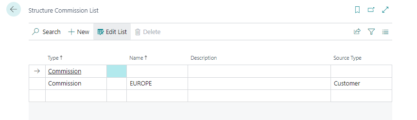 Questi filtri è possibile aggiungerli nella pagina “Structure Commission List”, nella quale si può impostare il tipo origine come cliente o prodotto, il nome del filtro e la descrizione.