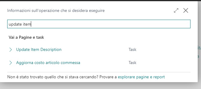 Attraverso quest’applicazione è possibile anche modificare le descrizioni degli articoli (uno o tutte insieme) attraverso la funzione “Update Item Description”. Questa è visibile sia a menù, sia all’interno dell’articolo sotto “Processo”.